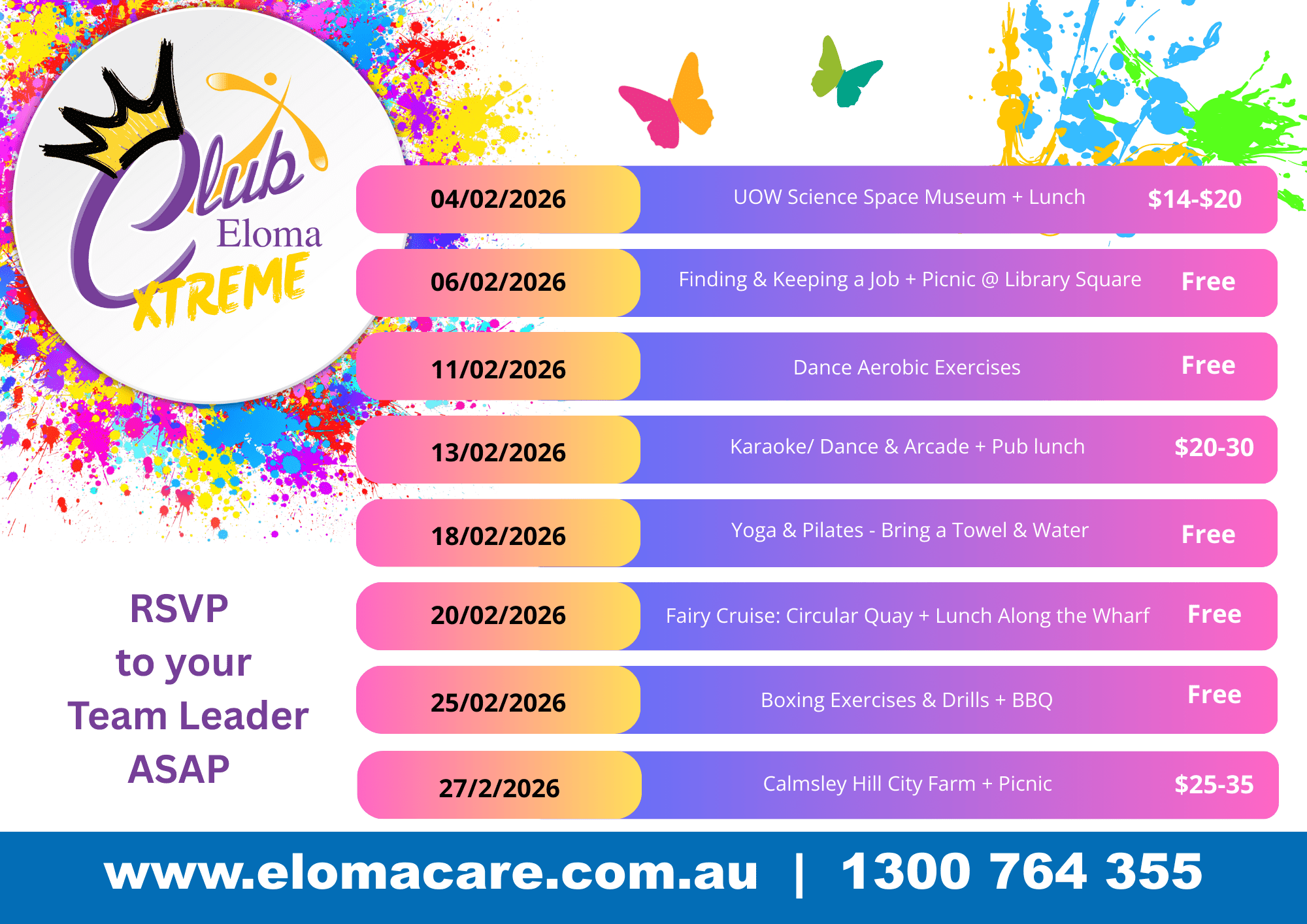 Club Eloma Xtreme gives you choice, freedom, and fun while helping you build confidence, connect with others, and experience life in an exciting new way. Every outing is designed to be social, energetic, and unforgettable.